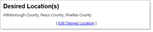 Select the Edit Desired Location link to display the Desired Location page, where you can specify where you want to work. See Specify Your Desired Job Location for details.
