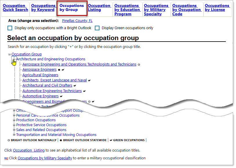 This tab allows you to find an occupation by first selecting a more general occupation group.