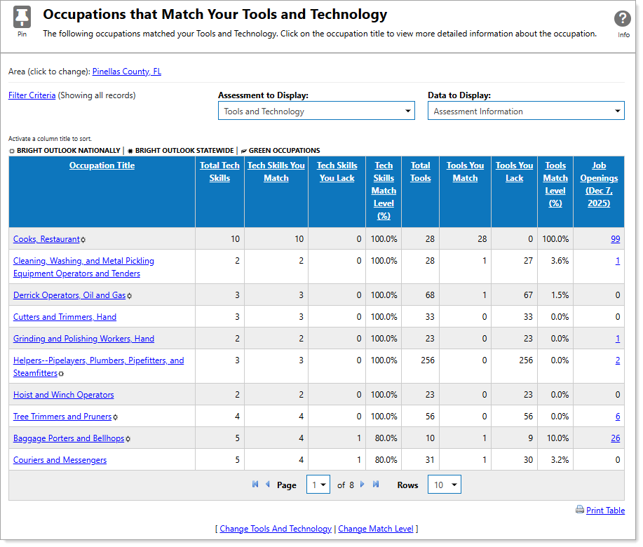 For more details on the Occupations Match page, see View Occupations That Match Your Assessment Outcome