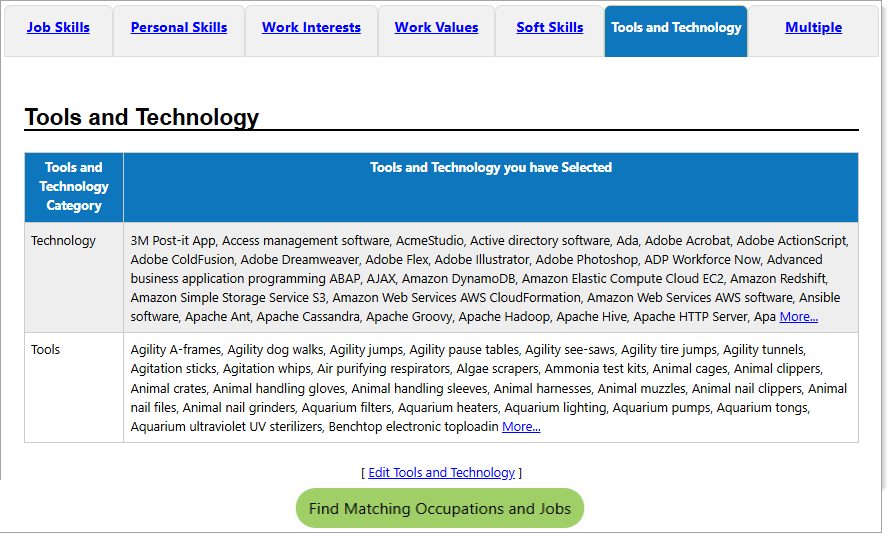 Search for and select your occupation to view related tools and technologies. See Search for an Occupation for details.