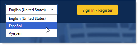 For sites that are translated into languages other than English (United States), you can change the language for your site (system pages, menus, buttons, etc.) by selecting from a drop-down list of available choices. You can also use Google Translate to translate the site into a wide selection of other languages.