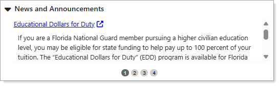 View additional information – Select the link to navigate to the information resource; for example, selecting the Educational Dollars for Duty link in the above image opens the Educational Dollars for Duty page on the Department of Military Affairs website.